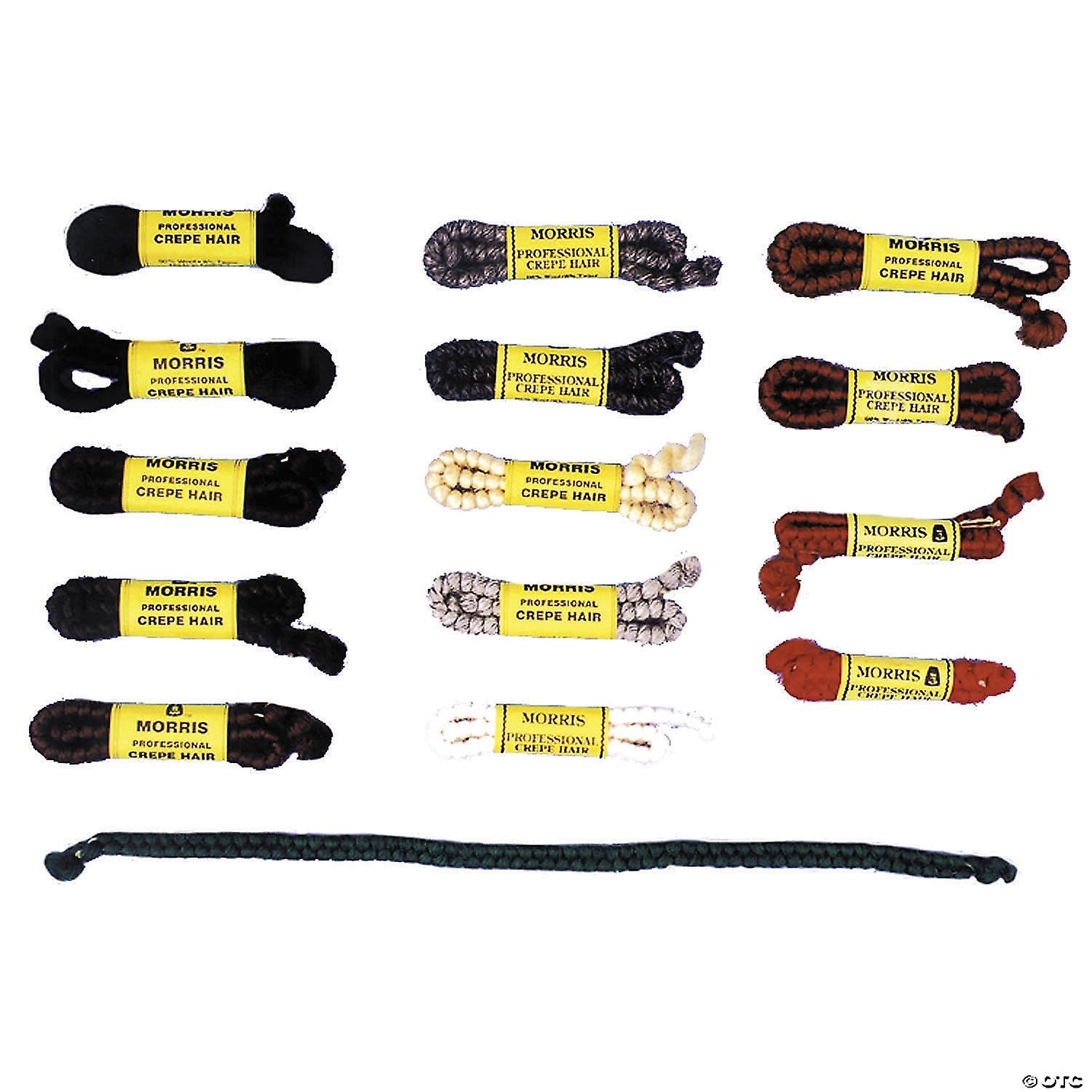 Used in the theatre for hair beards mustaches etc. It comes in braids and after it is pulled apart it is glued to the face with spirit gum. Sold in 1 foot length.