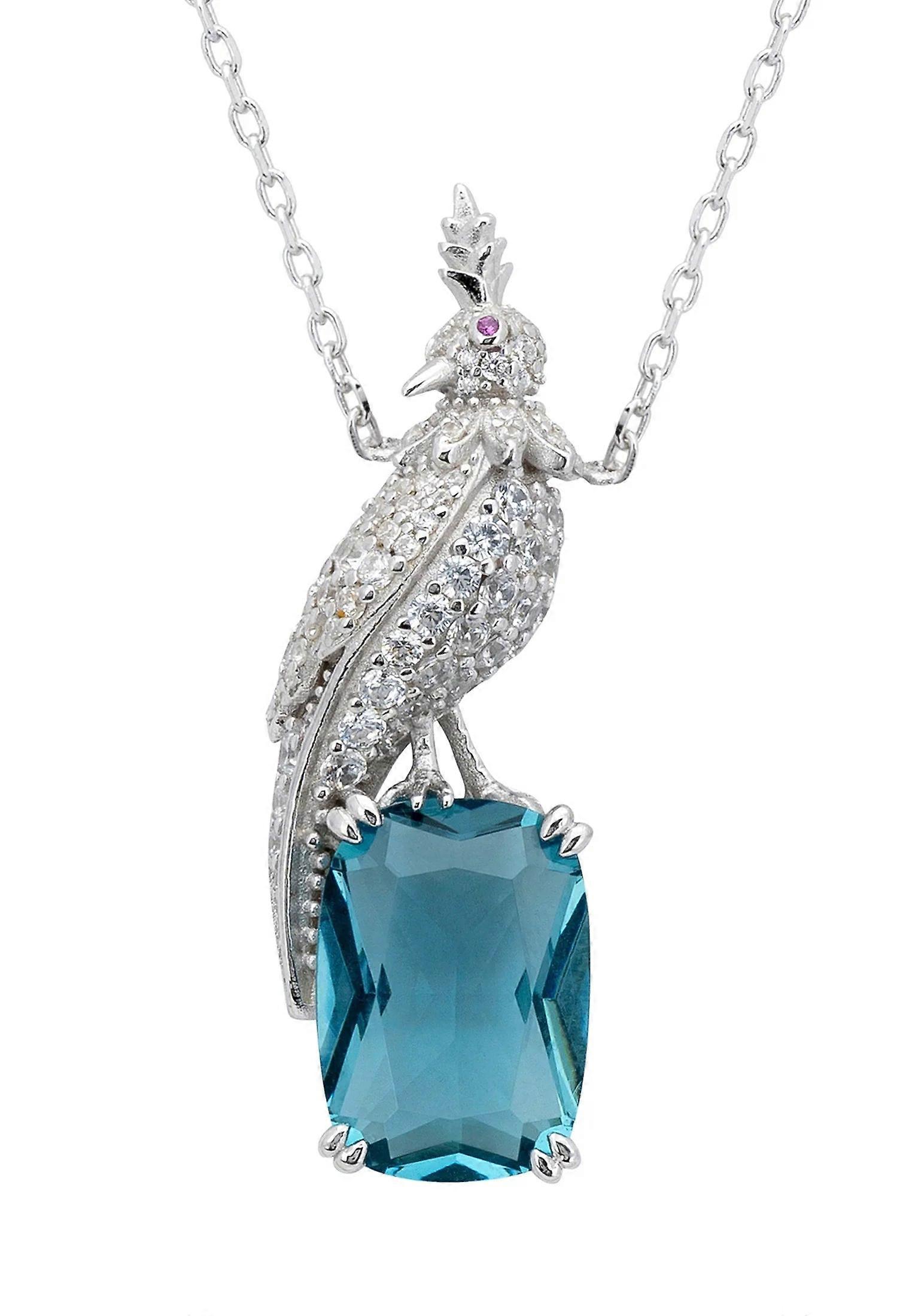 Crested Love Bird Pendant Necklace London Blue Topaz Silver for Women