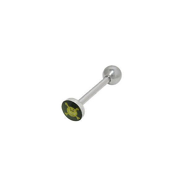 Body Jewelry OnlineCross Bones Face Tongue Ring This is a cross bones face tongue ring.This tongue ring is made up of 316L Surgical Steel.The ball measures 5mm and the logo also measures 5mm.The size is 14 gauge with a length of 15mm - 5/8 of an inch.This item is sold individually.All items are Nickel Free, Autoclave Safe, and Hypoallergenic.