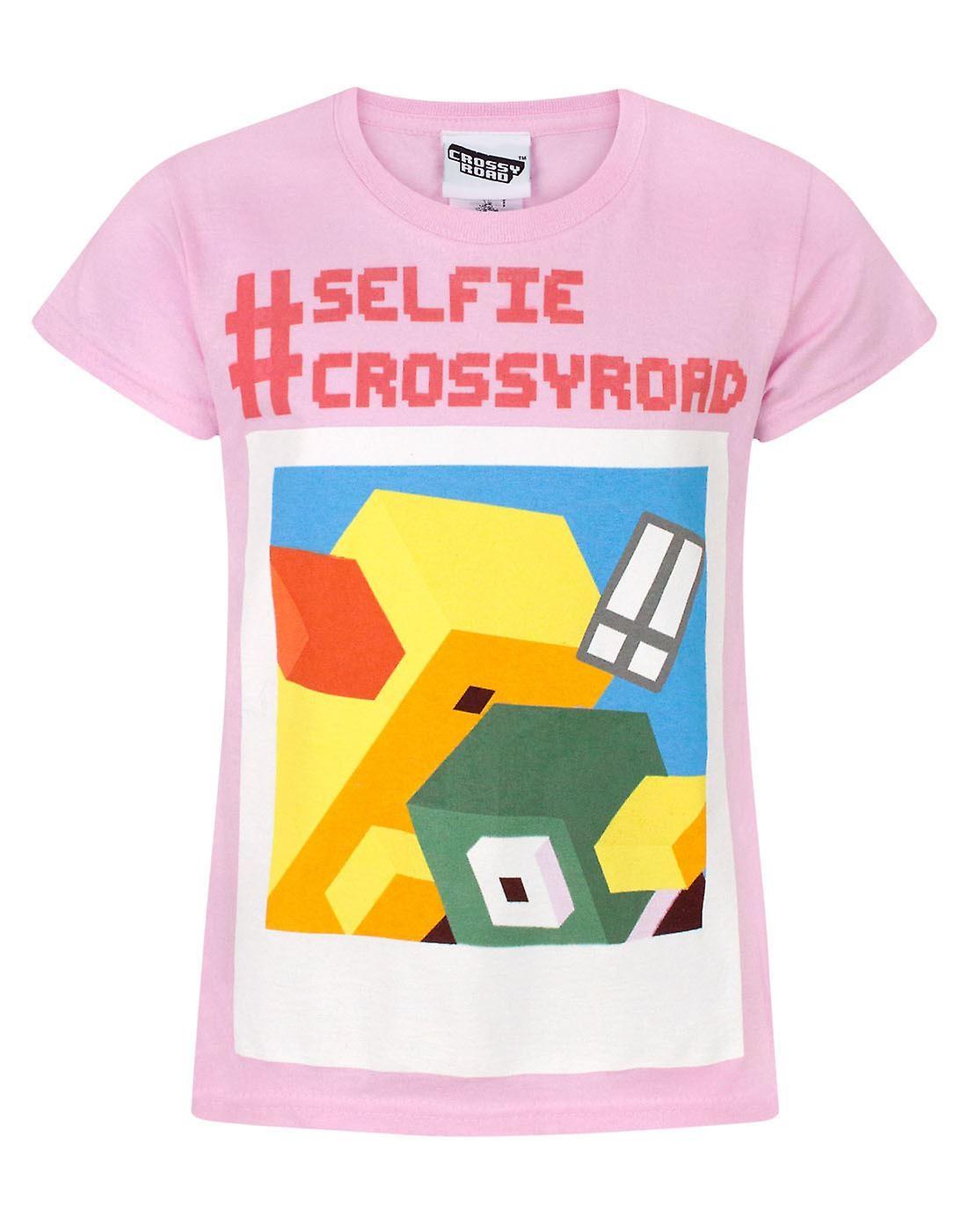 Crossy Road Girls Short Sleeved T-Shirt Pink Selfie