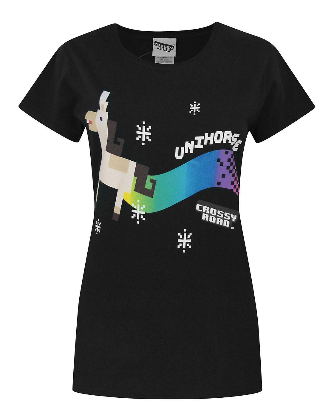 Crossy Road Womens Short Sleeved T-Shirt Black Unihorse