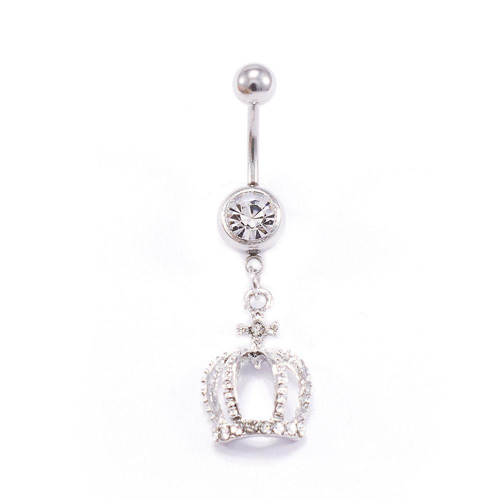Crown design 14g 316l surgical steel dangle belly button ring for women with cz