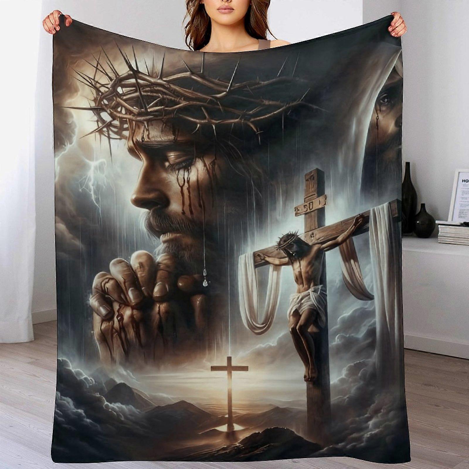 Crown of Thorns & Cross Print Flannel Blanket - Cozy Warm Throw | Faith-Based Gift for Christian Families