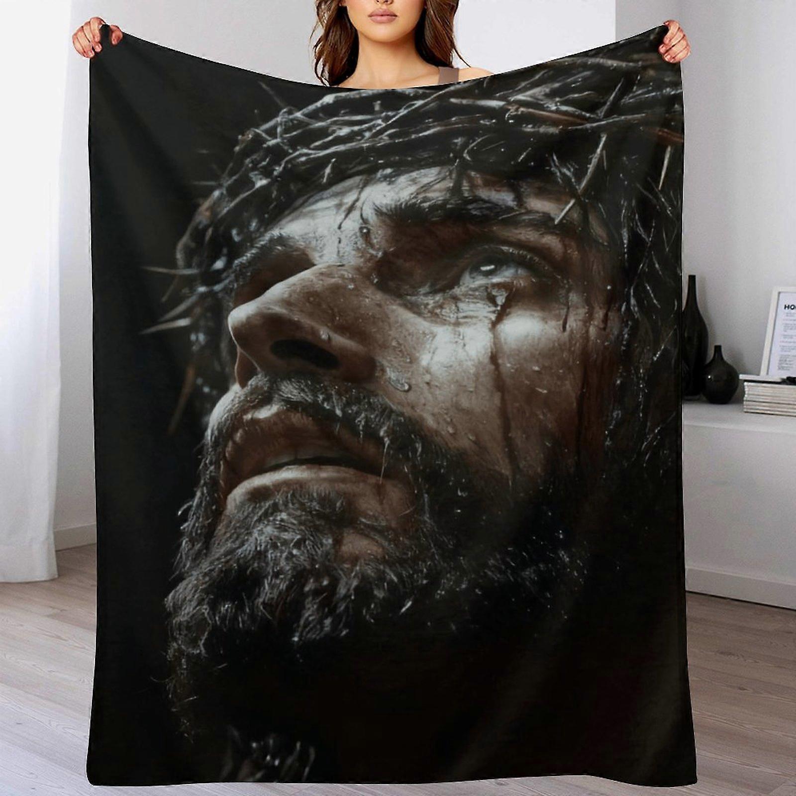 Crown of Thorns Portrait Print Flannel Blanket - Cozy Warm Throw | Faith-Based Decor for Christian Individuals