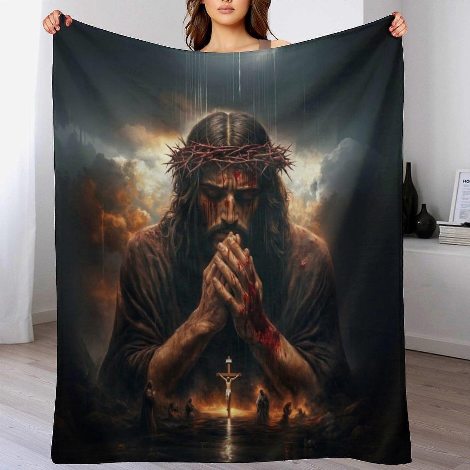 Crown of Thorns Praying Figure Print Flannel Blanket - Cozy Warm Throw | Faith-Based Gift for Believers