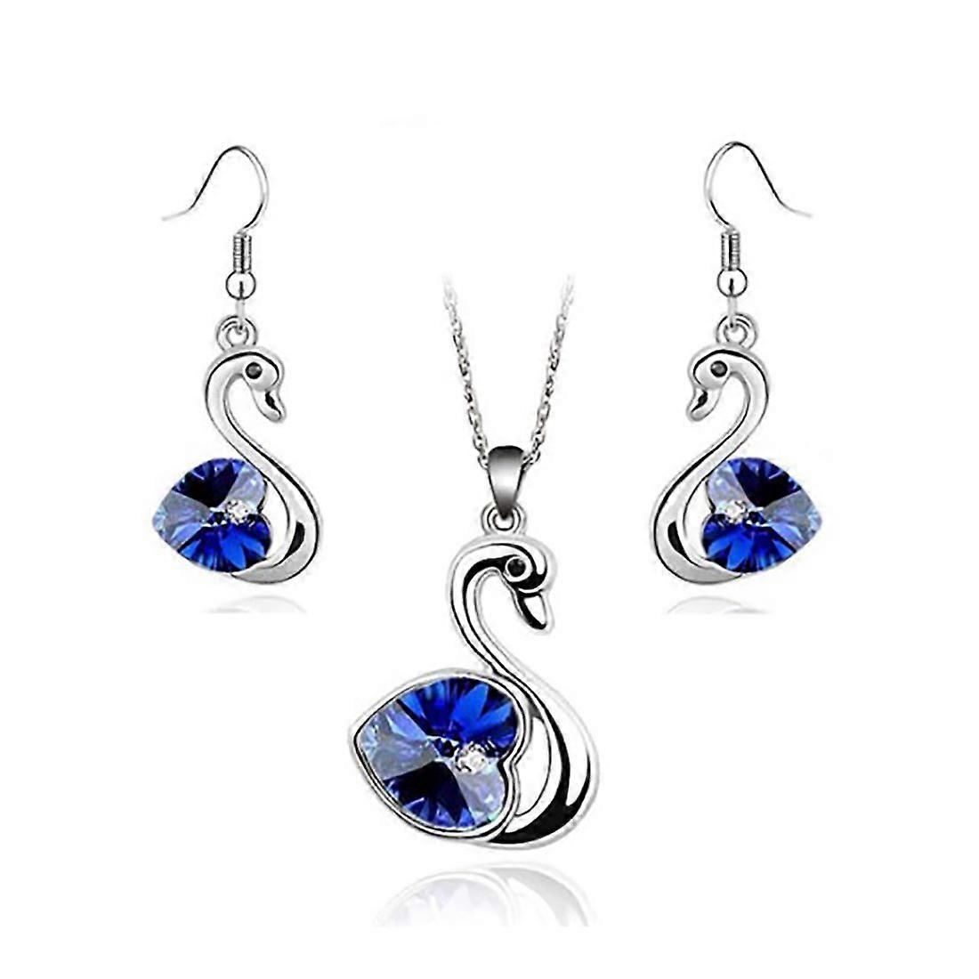 Crystal Love Heart In Dark Blue Swan Jewellery Set Earrings And Matching Necklace Silver
