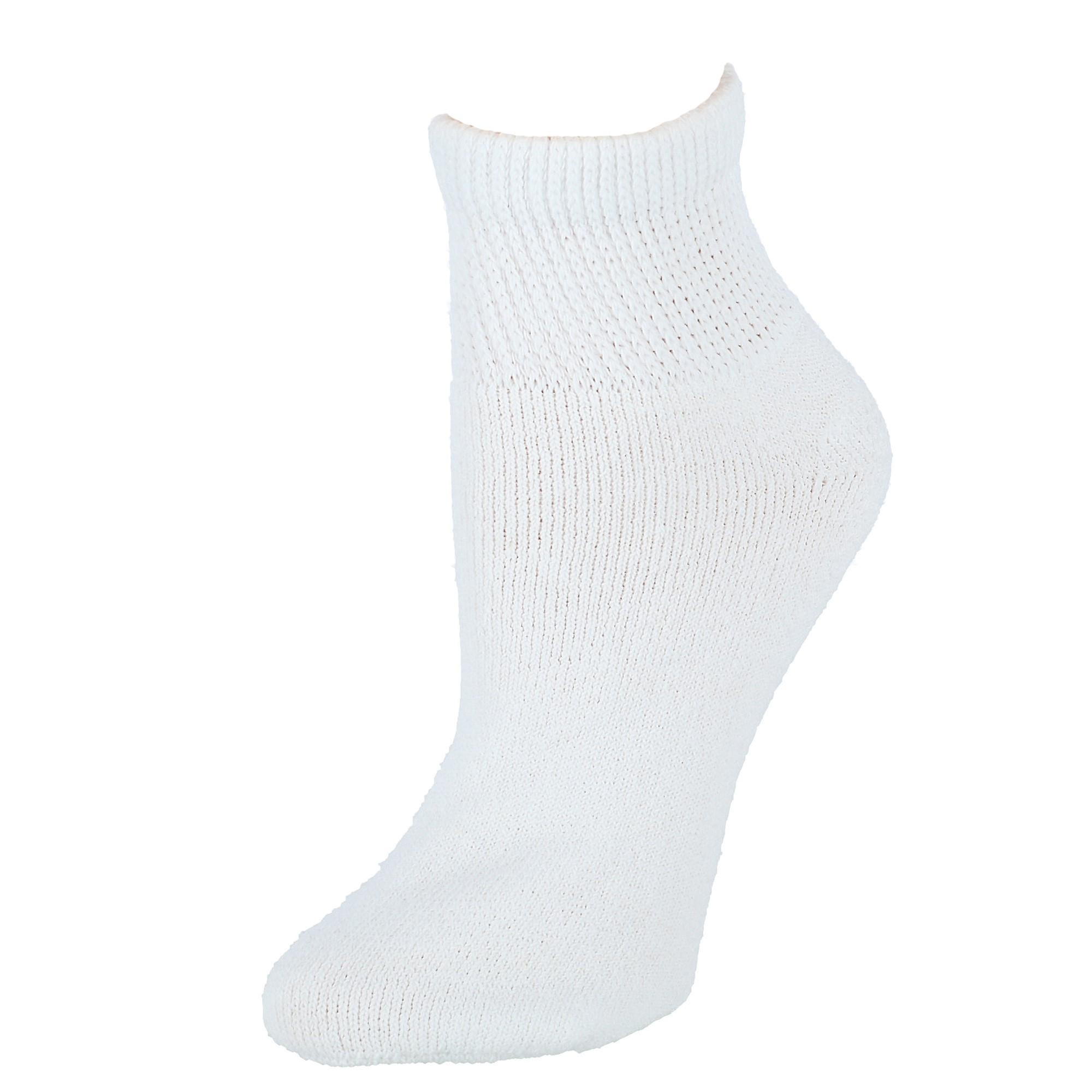 Gentle on your feet, these classic ankle socks are specially designed for women with sensitive feet and ankles. Made from high-quality materials, they feature smooth toe seams to help prevent irritation and a non-binding top that stays in place without pinching or constricting. Whether at home or on the go, these socks provide all-day comfort and support. Non binding top. Loose fit for comfort. Smooth, flat toe seams. Cool comfortable cotton. Fits shoe sizes 5-10.