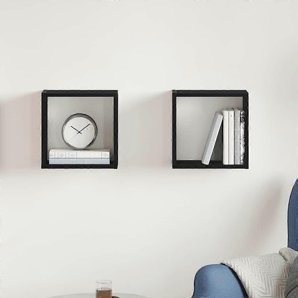 Würfel-Wandregale 2 Stk. Schwarz Eichen-Optik 30x15x30 cm