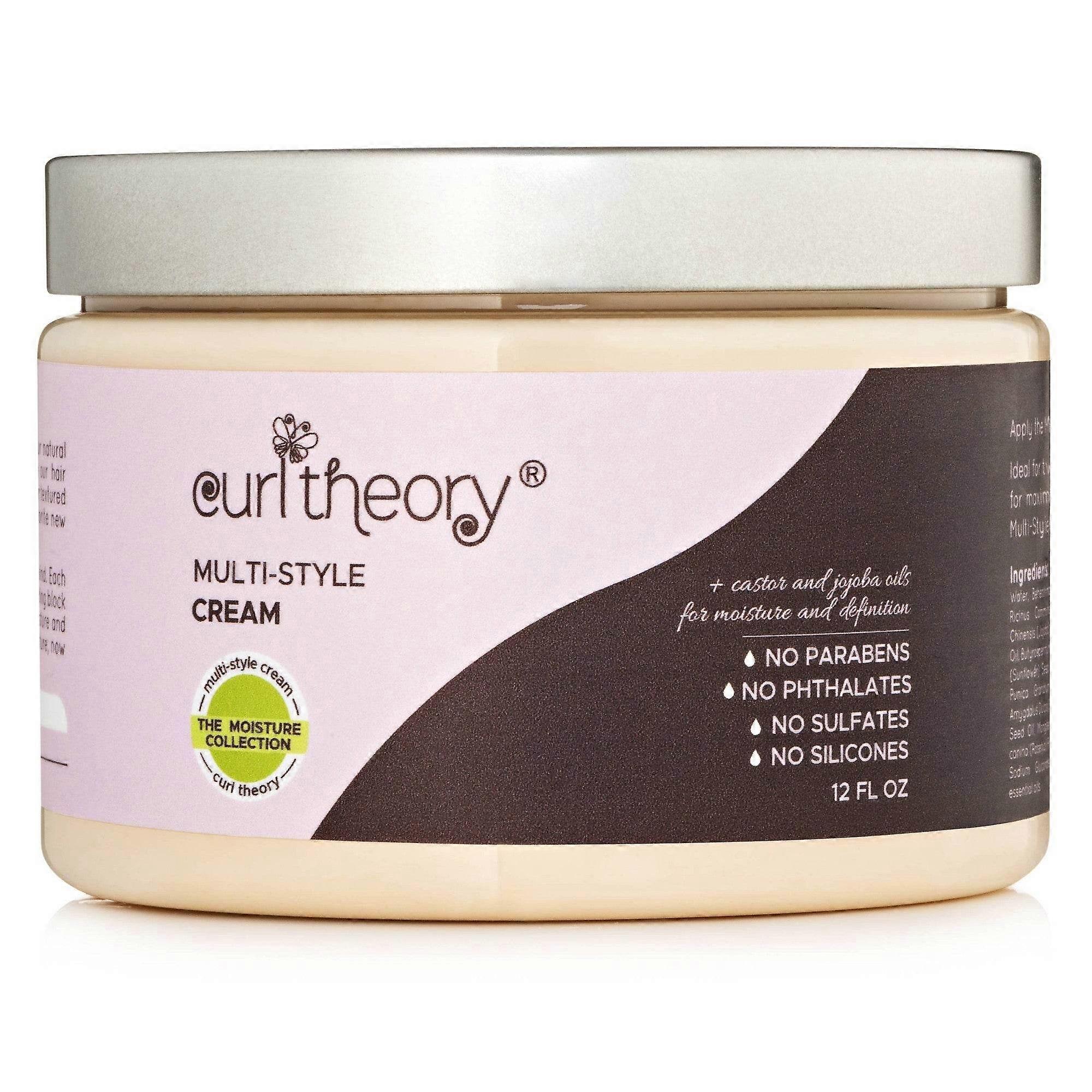 For too long, we've told ourselves that we can't. Can't rock our natural curls. Can't keep our twist-outs moisturized. Can't cleanse our hair regularly without it tangling like a bird's nest. At Curl Theory, our textured hair salon, we hear these stories daily. Guess what? Your favorite new product in your textured hair tool kit is now in your hands The Curl Theory Moisture Collection is designed with you in mind. Each product in the Collection prioritizes hydration as the basic building block of healthy hair, using a special blend of oils to maximize moisture and elasticity. No more choosing between curl definition and moisture; now you can have both. Apply the Multi-Style Cream to small sections of damp hair. Style as desired. Hair Type: All textured hair porosities and types UPC: 857108008045 Weight: 1.13 lbs