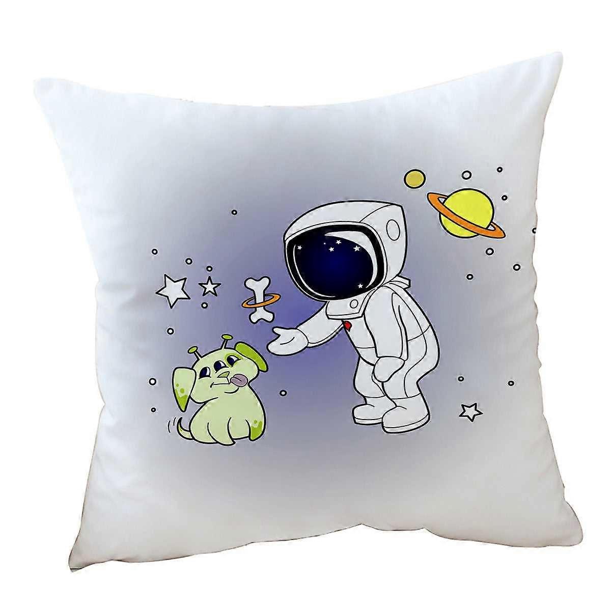 Cute and Funny Astronaut and Alien Dog Cushion Cover