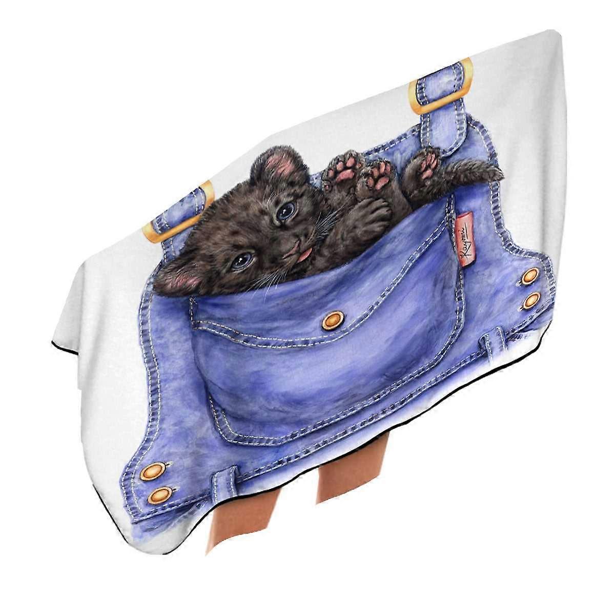 Cute Animal Art Black Panther Cub in a Pocket Microfiber Beach Towel