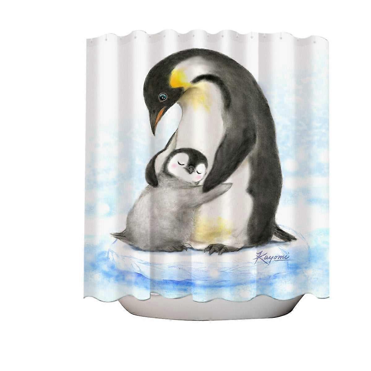 Cute Animal Art Drawings Penguins Hug Shower Curtain
