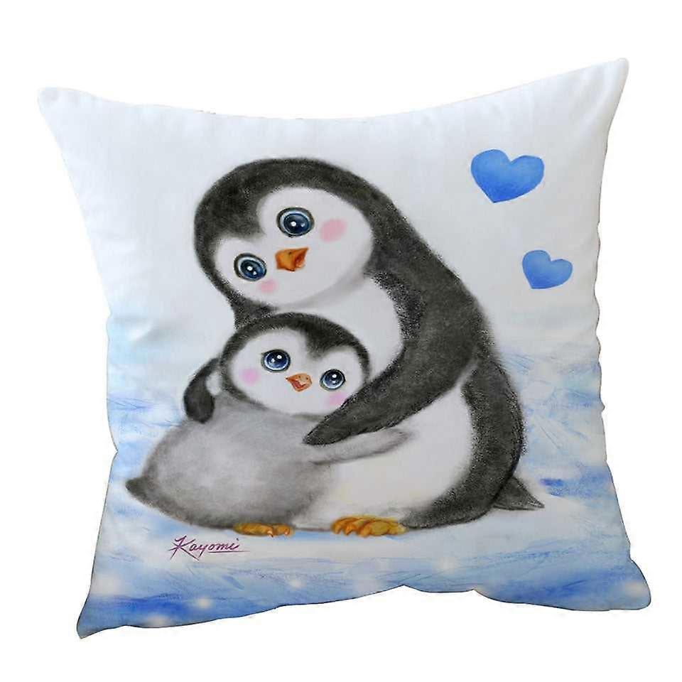 Cute Animal Art Drawings Penguins Mom and Baby Cushion Cover