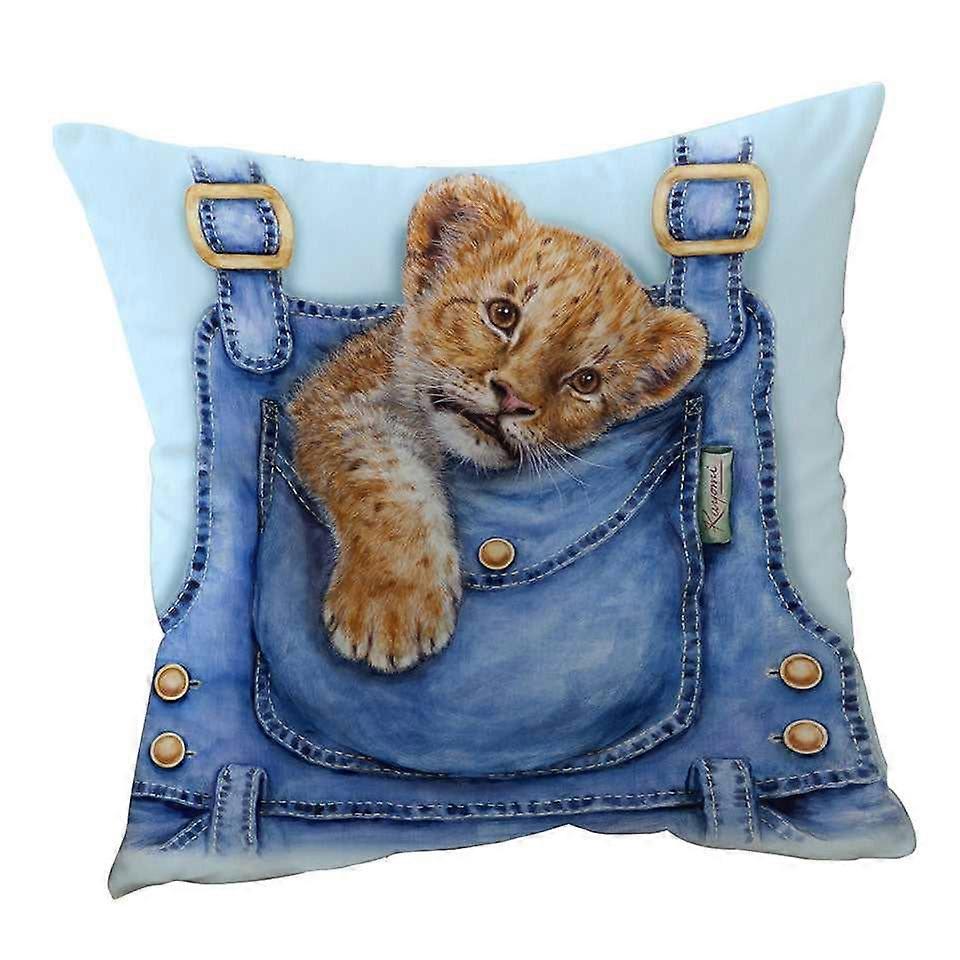 Cute Animal Art Lion Cub Overall Pocket Cushion Cover