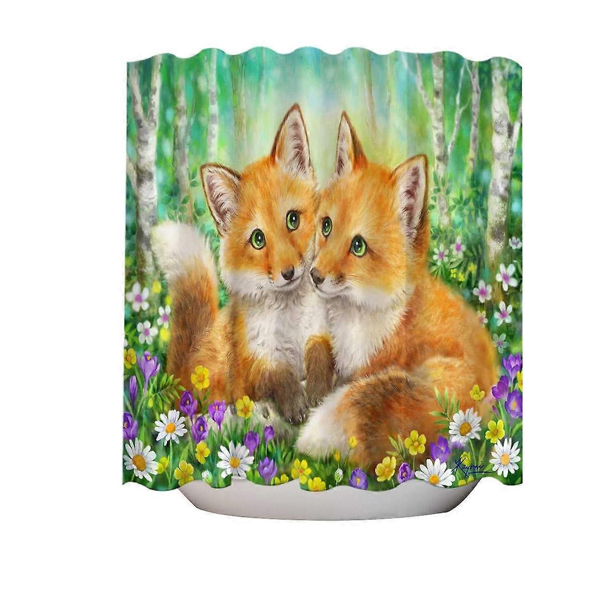 Cute Animal Painting Fox Brothers and Flowers Shower Curtain