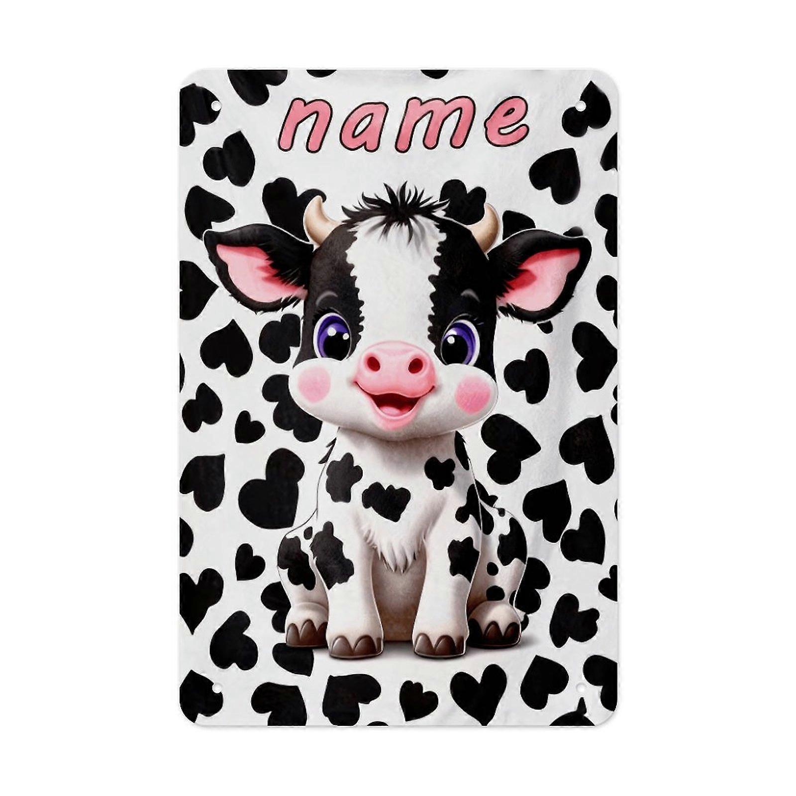 Cute Cartoon Cow Metal Tin Sign with Name – Farm Animal Wall Decor for Kids Room, Nursery, Gift
