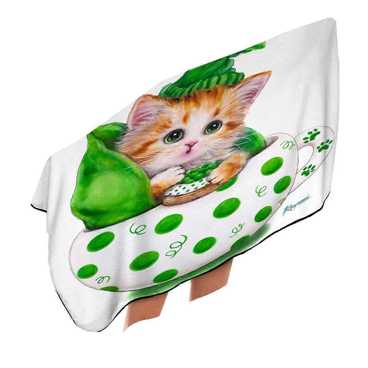 Cute Cat Art Drawings the Peapod Cup Kitten Microfiber Beach Towel