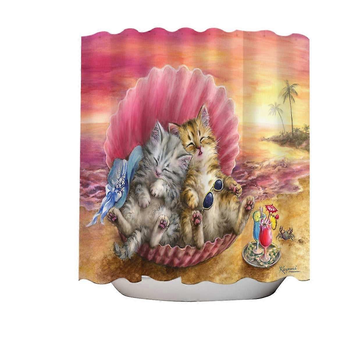 Cute Cats Designs Hawaiian Beach Sunset Kittens Shower Curtain