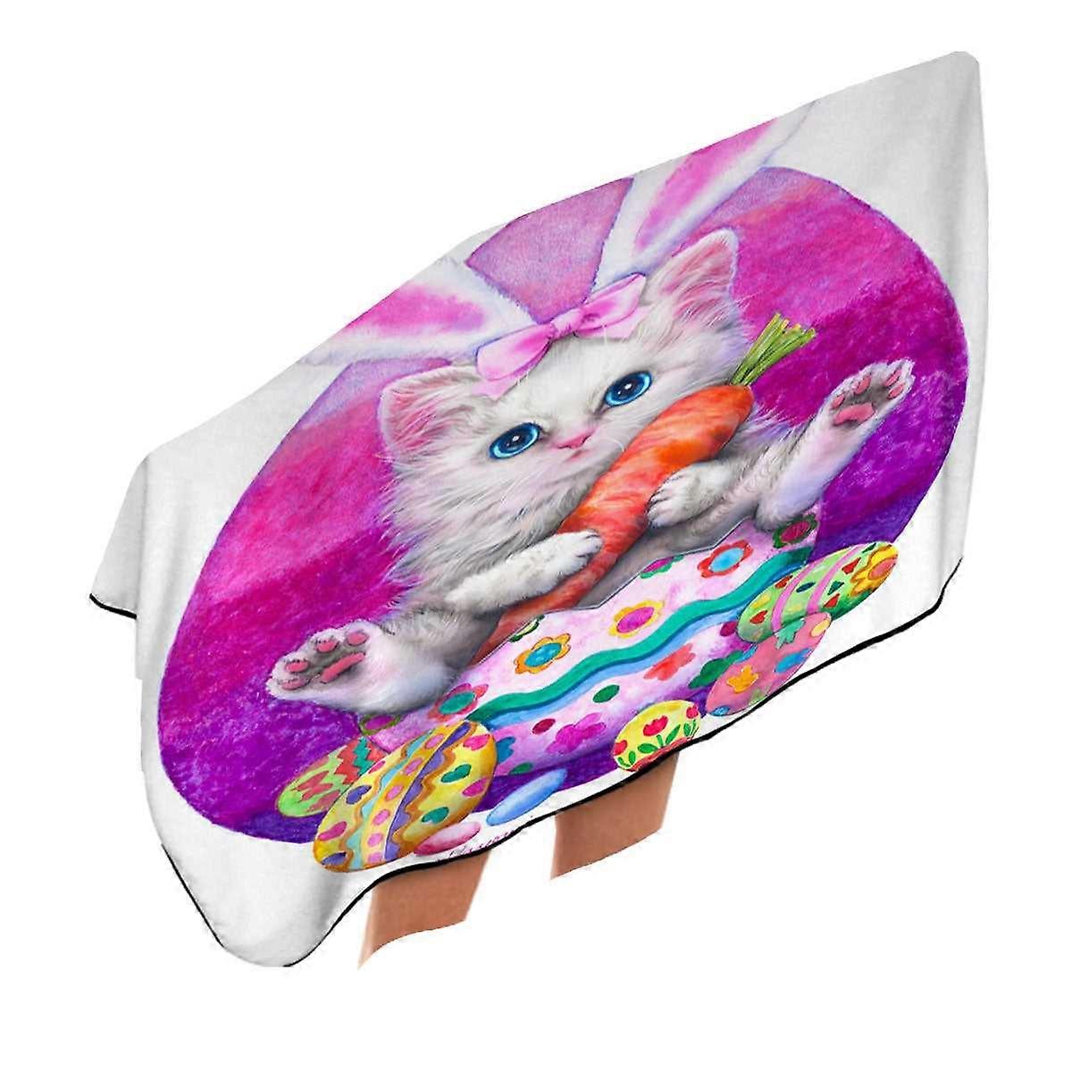 Cute Cats Easter Bunny Kitten Eating Carrot Microfiber Beach Towel