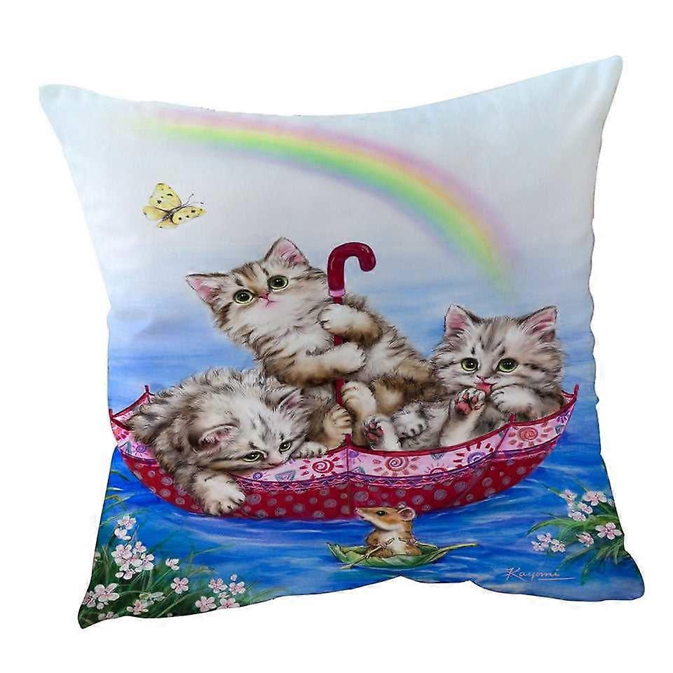 Cute Cats for Kids Three Kittens in the Lake Cushion Cover