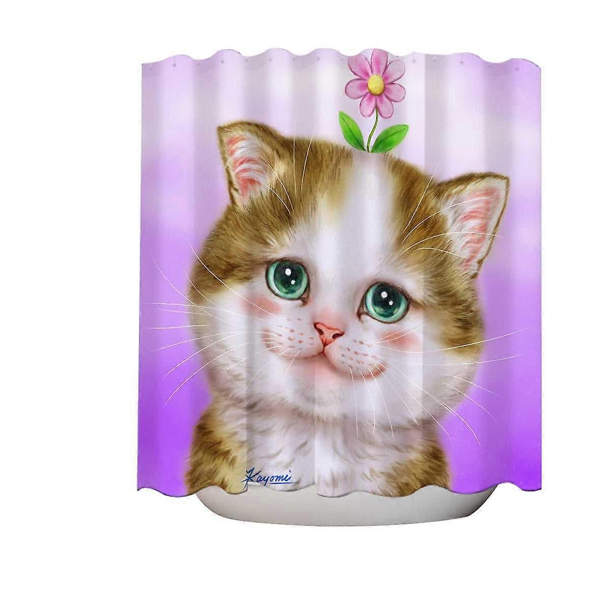 Cute Cats Prints Blushing Sweet Flower Kitten Shower Curtain