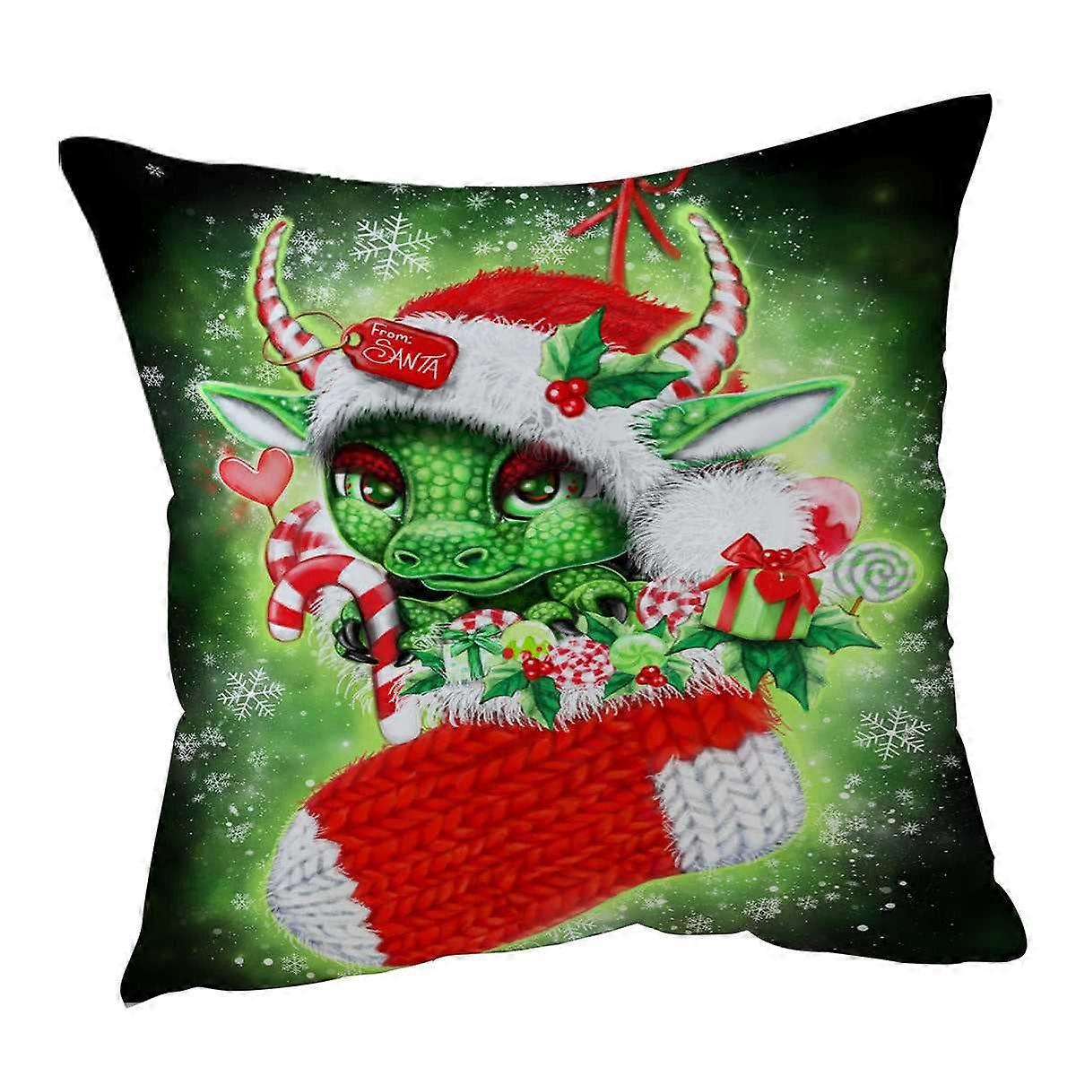 Cute Christmas Stocking Stuffer Lil Dragon Cushion Cover