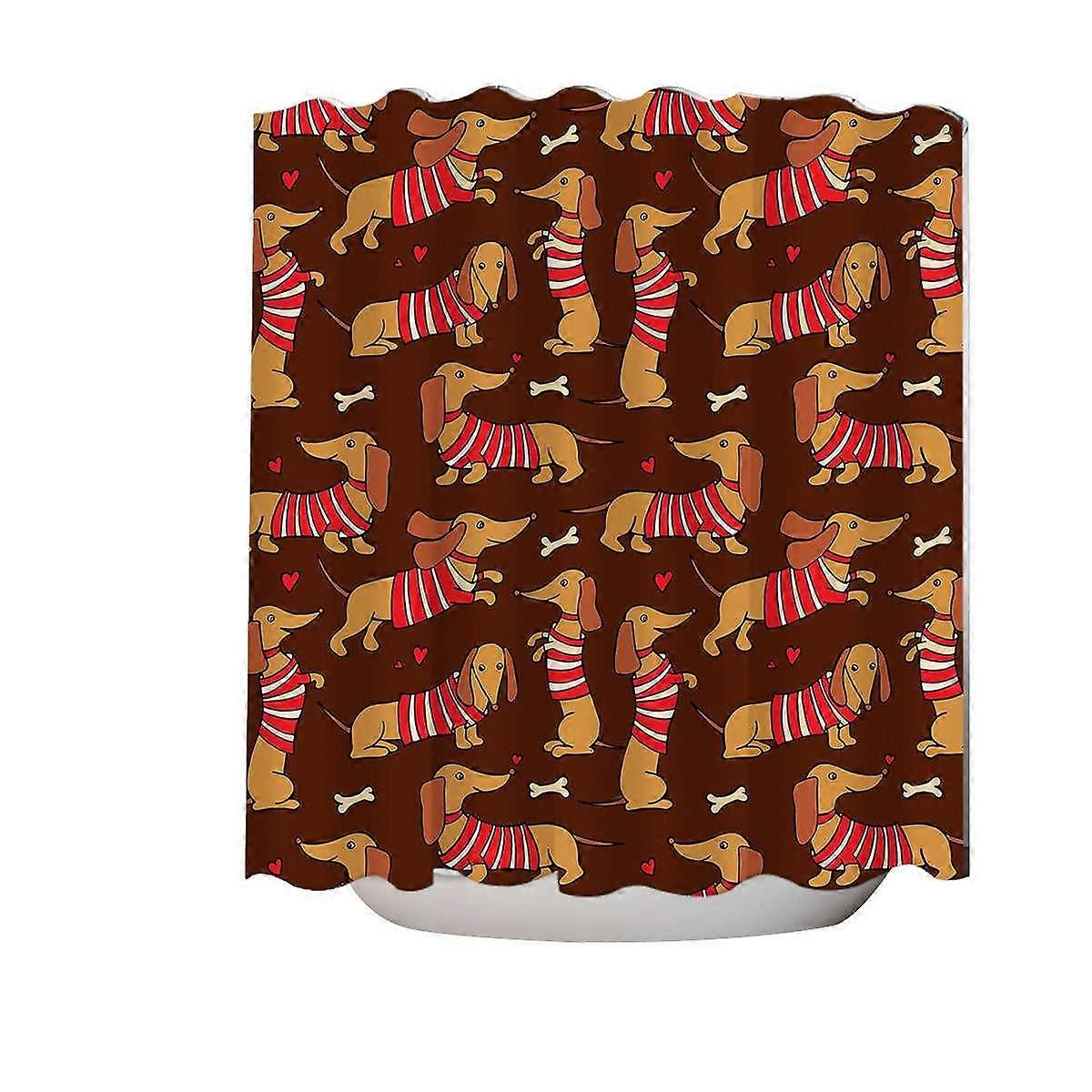 Cute Dachshund Wearing Red and White Stripes Shower Curtain