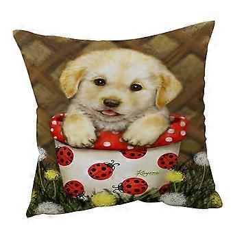 Cute Dog Puppy in Ladybug Flower Pot Cushion Cover