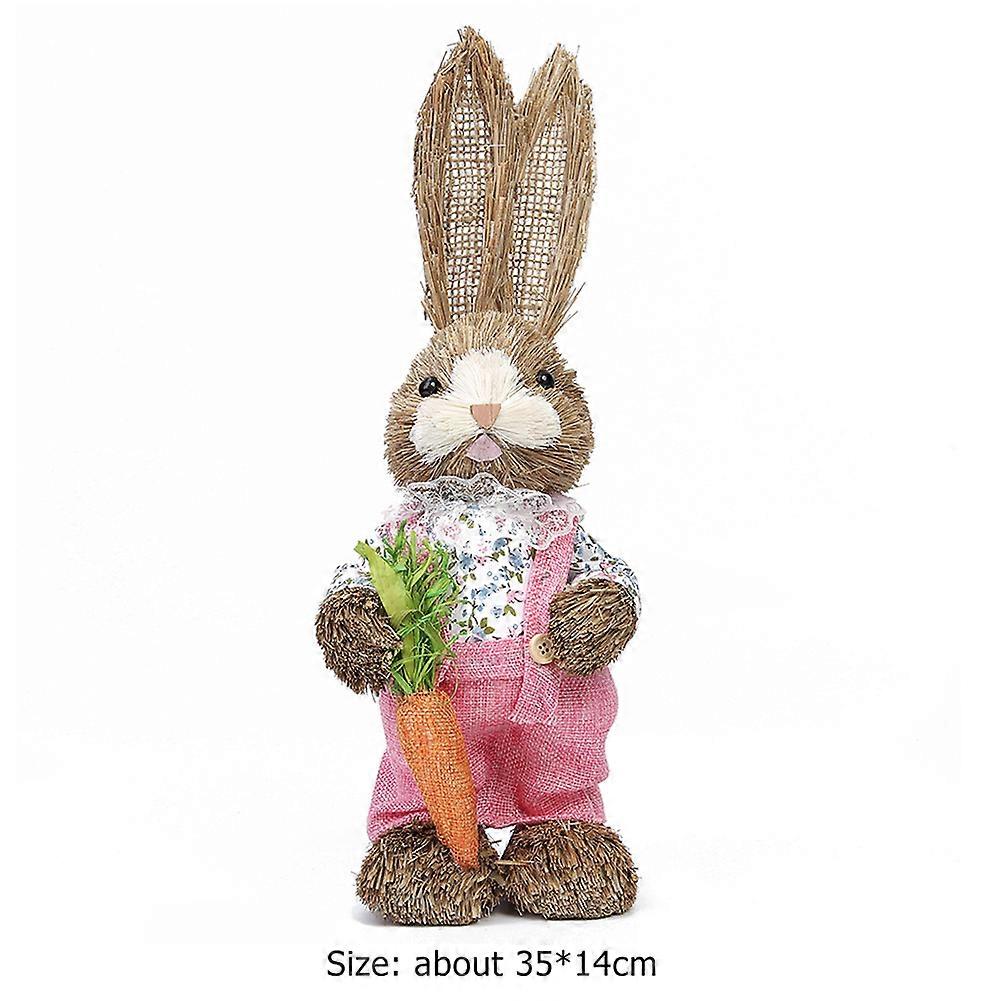 Cute Easter Straw Rabbit Handicraft Desktop Bunny Ornament for Bedroom Living Room Party Christmas Decorations