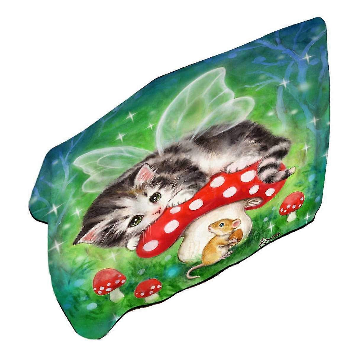 Cute Fantasy Cat Art Kitten Fairy on Mushroom Microfiber Beach Towel