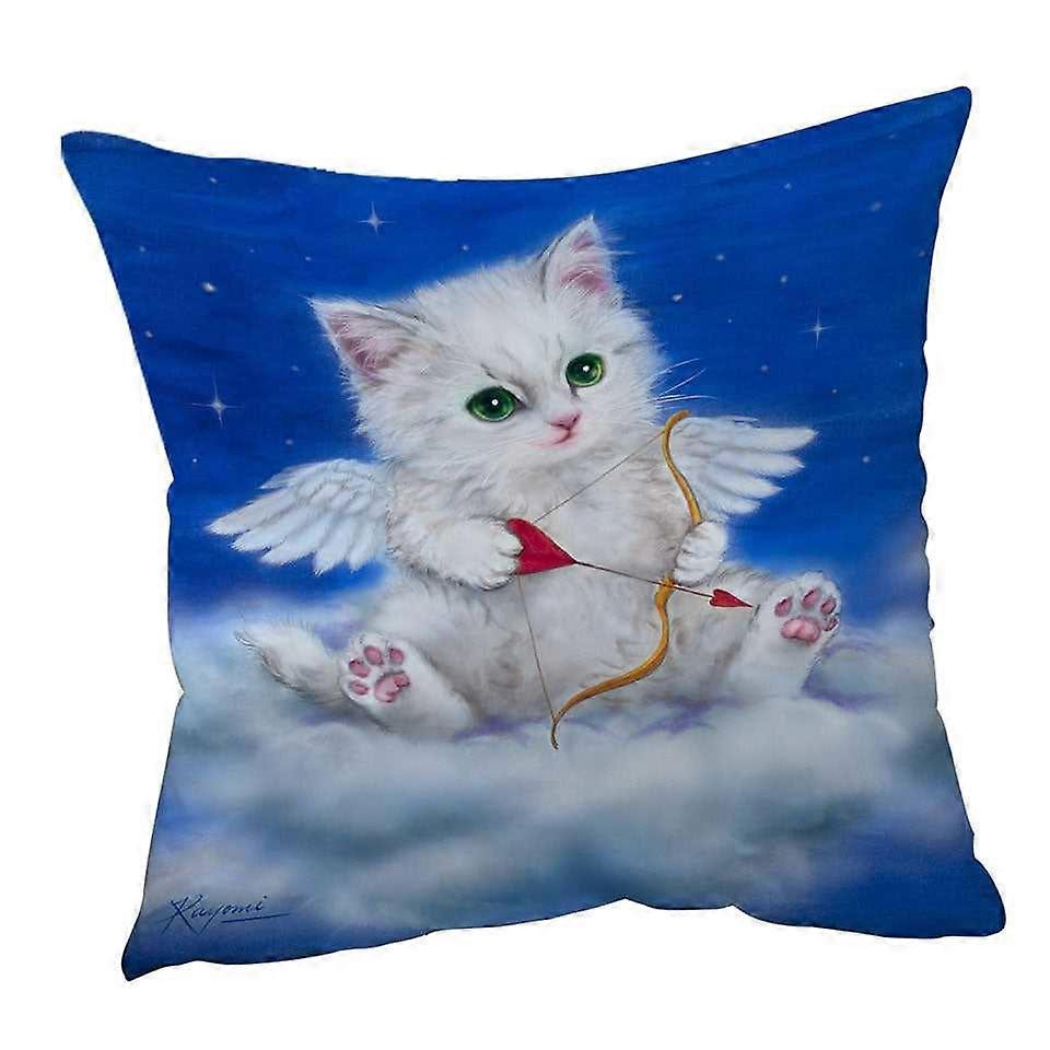 Cute Fantasy Cat Art Love Angel White Kitten Cushion Cover