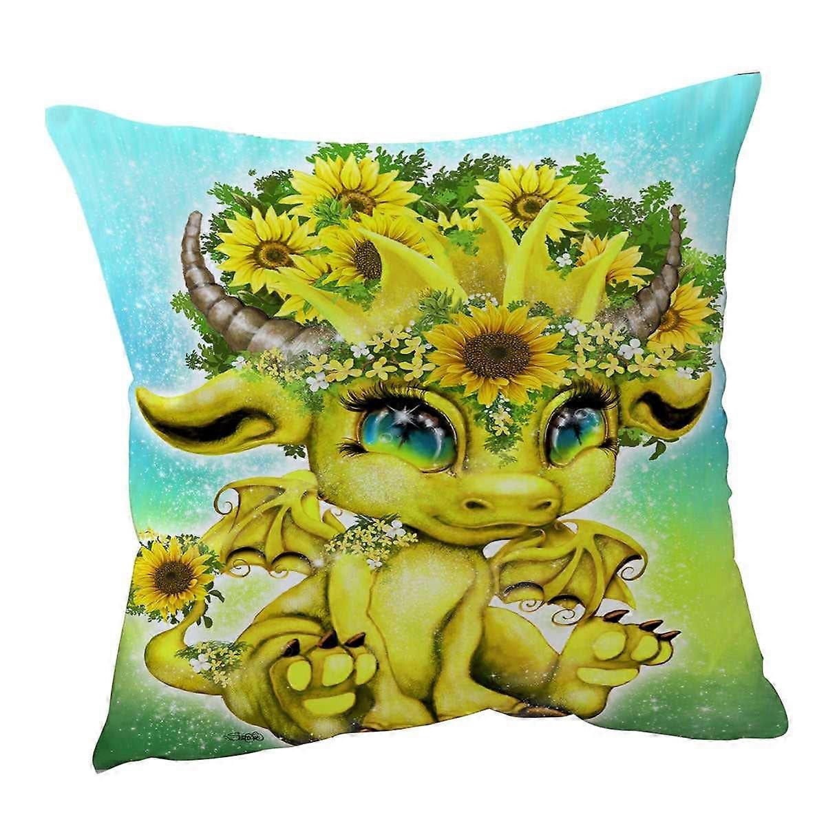 Cute Fantasy Creature Sunflower Lil Dragon Cushion Cover