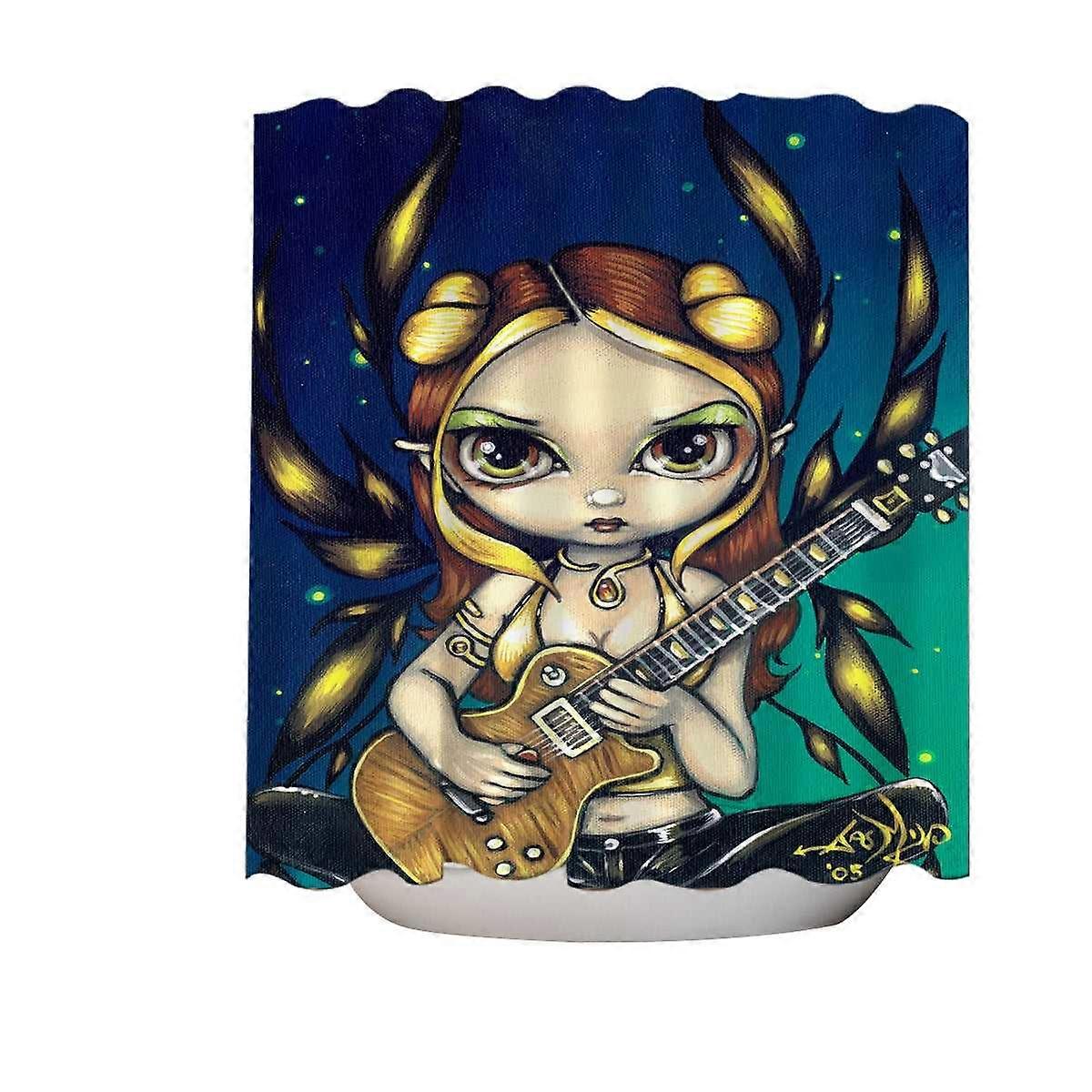 Cute Fantasy Golden Guitar Fairy Shower Curtain