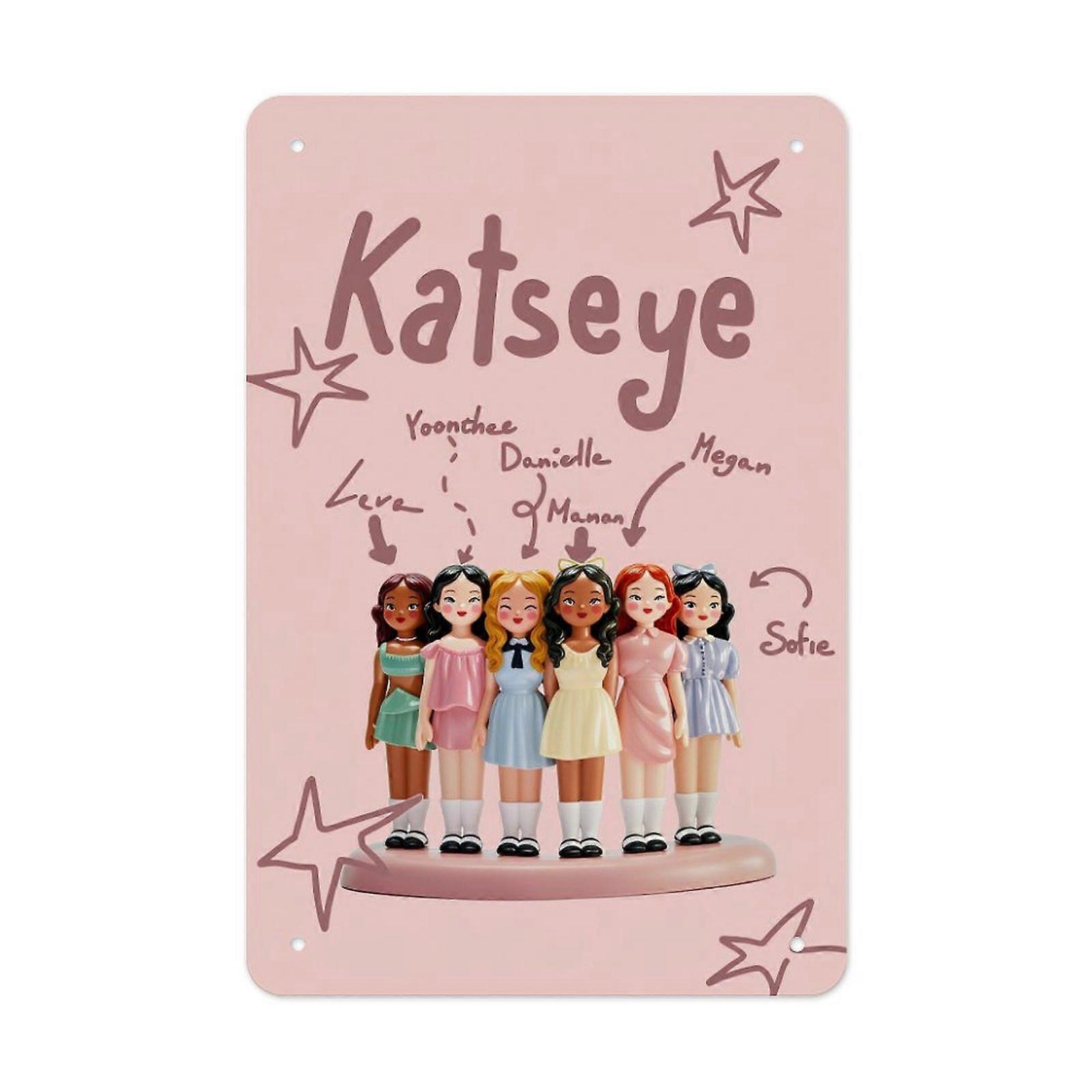 Cute Girl Doll Illustration Metal Tin Sign Pink Retro Wall Decor Kids Room Gift