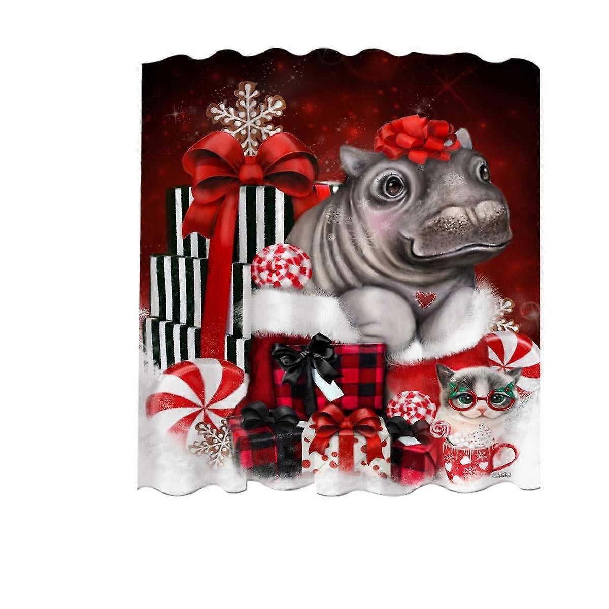 Cute Hippo Christmas Surprise Shower Curtain