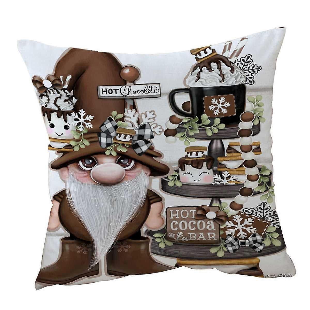 Cute Hot Chocolate and Smores Gnome Cushion Cover