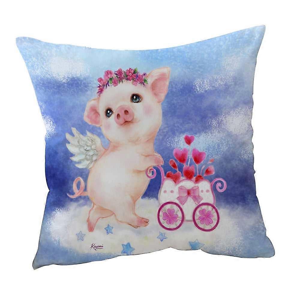 Cute Kids Design Heart Angel Pig with Flowers Cushion Cover