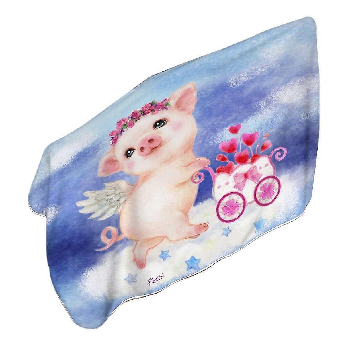 Cute Kids Design Heart Angel Pig with Flowers Microfiber Beach Towel