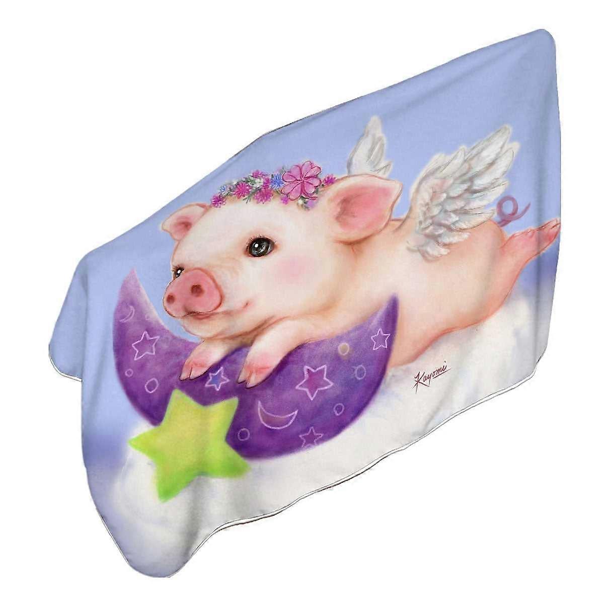 Cute Kids Design Purple Moon Angel Pig Microfiber Beach Towel