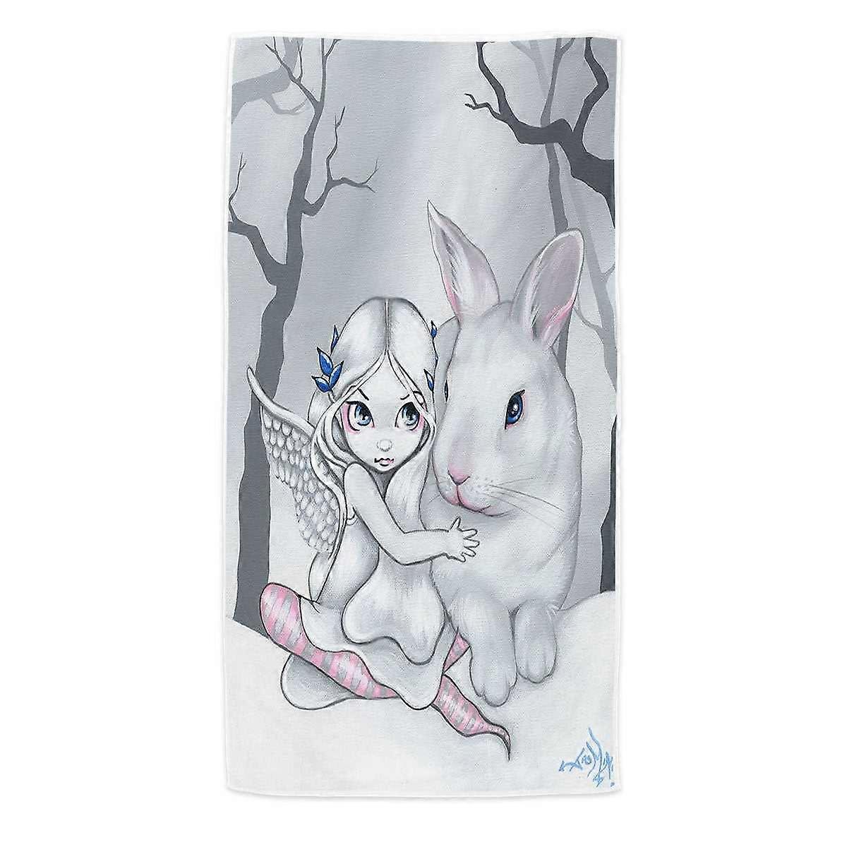 Cute Kids Drawing Winter Fairy and Snow Bunny Microfiber Beach Towel