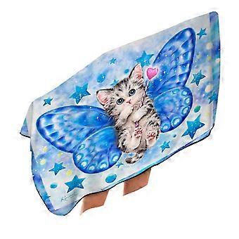 Cute Kitten Designs Blue Butterfly Kitty Cat Microfiber Beach Towel