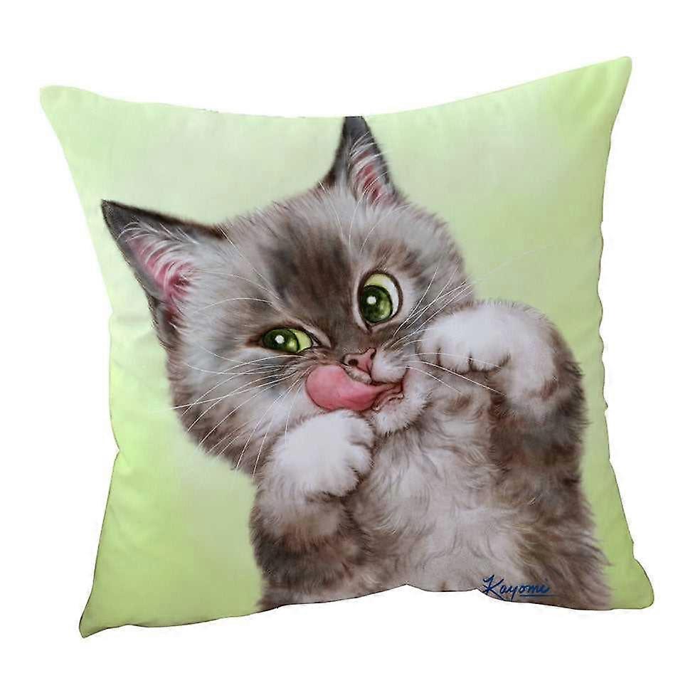 Cute Kittens Drawings Brownish Tabby Kitty Cat Cushion Cover