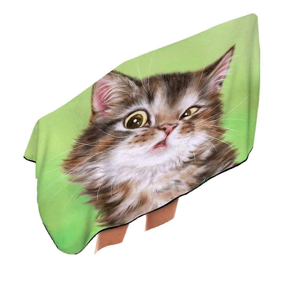 Cute Kittens Paintings Brownish Tabby Kitty Cat Microfiber Beach Towel