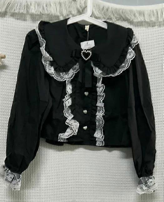 Cute Lace Patchwork Long Sleeve Crop Top Blouse - Y2k Harajuku Style With Bow &