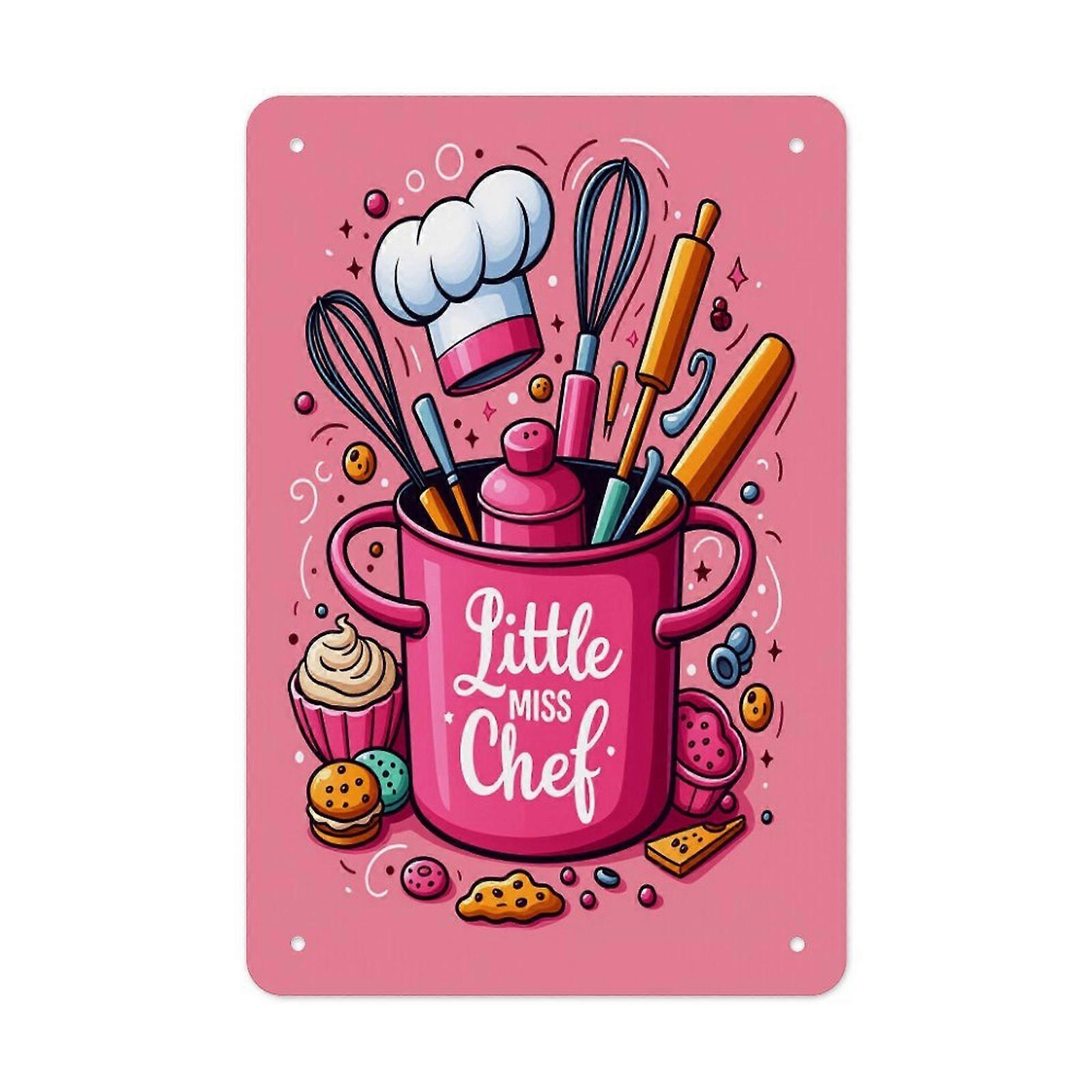 Cute Little Miss Chef Baking Tools Graphic Tin Sign Metal Wall Art Kitchen Home Decor