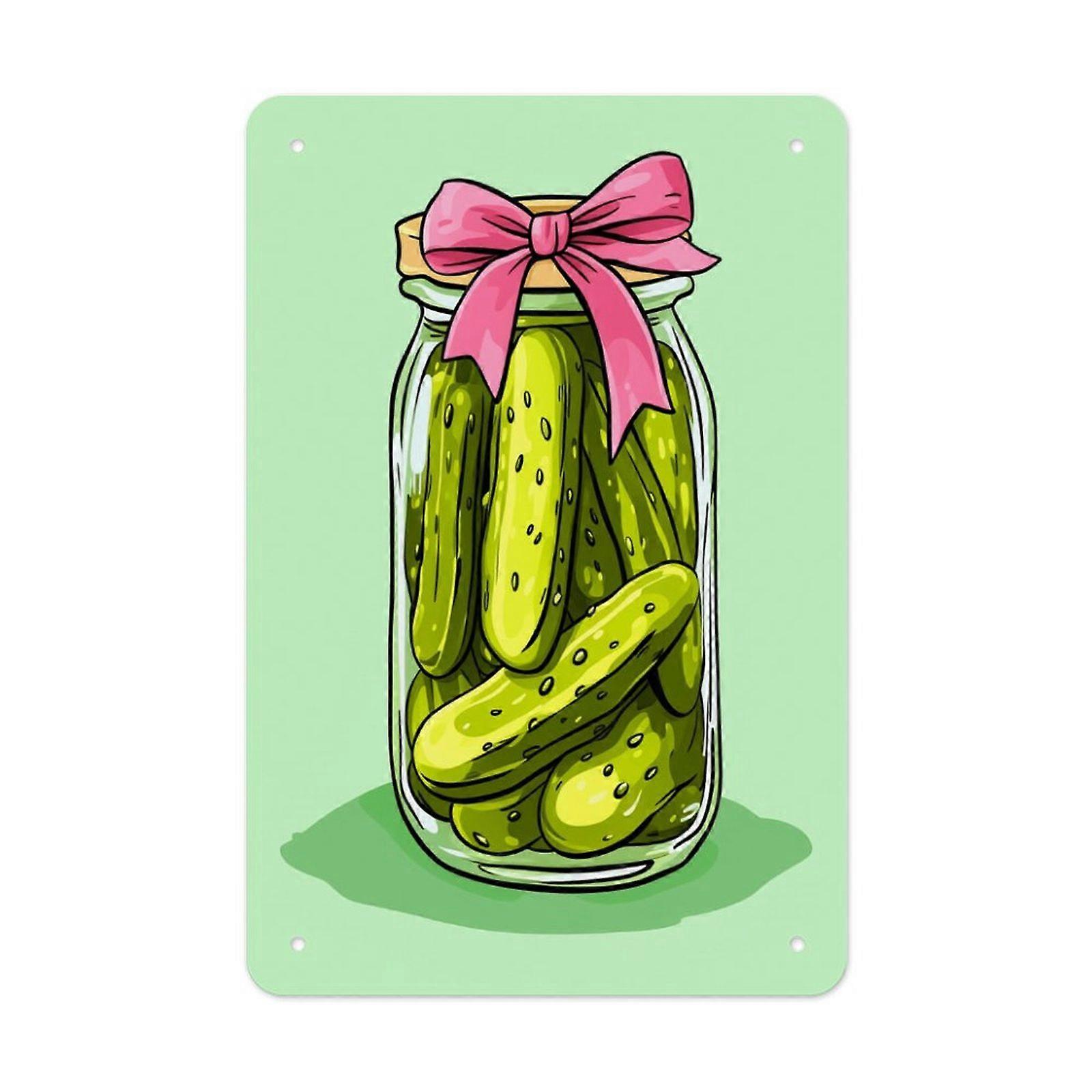 Cute Pickle Jar Metal Tin Sign Wall Decor for Home Kitchen Fun Art Poster Ornament
