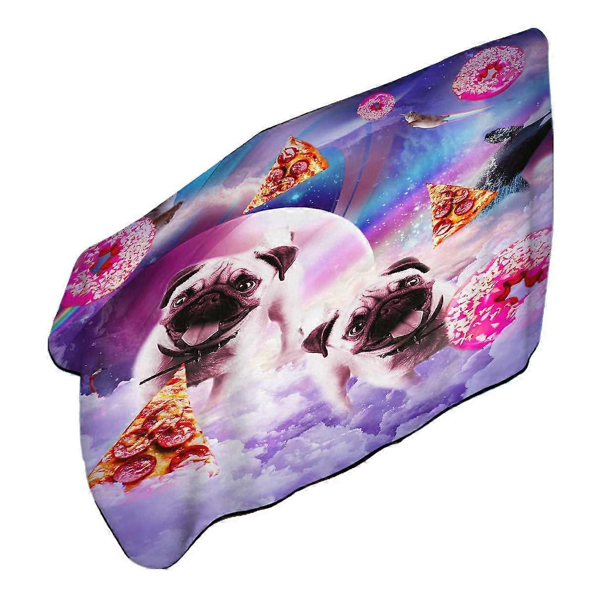 Cute Pugs Dogs in the Pizza Donut Space Microfiber Beach Towel