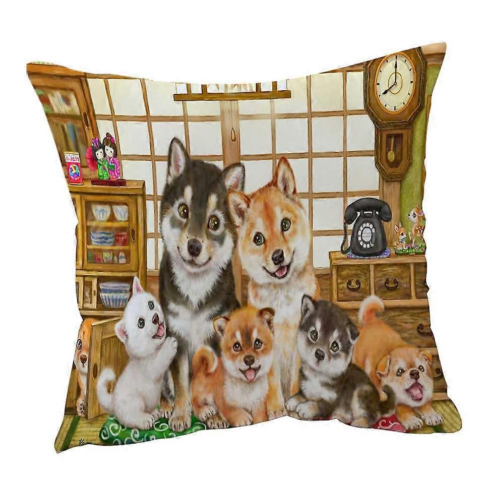 Cute Shiba Inu Dogs and Puppies Family Cushion Cover
