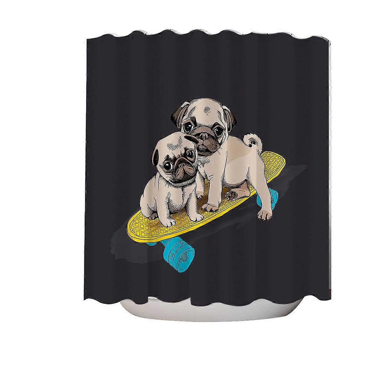 Cute Skating Pugs Shower Curtain