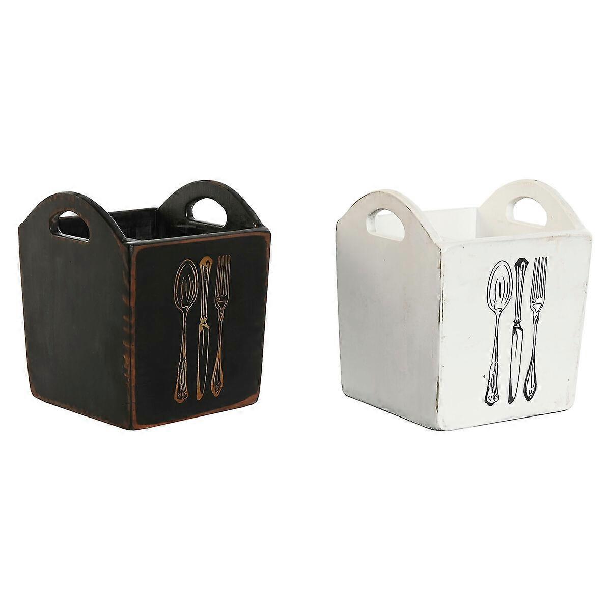 Cutlery basket Home ESPRIT White Black Fir wood 15 x 15 x 18 cm